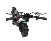 Features include front & rear suspension, tubeless front tire + puncture-free solid rear tire for a smoother ride, and a high-quality build designed to endure rain with water-resistance rated at IPX5.