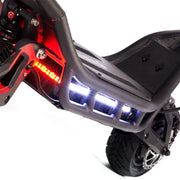 The Nami Burn-E2 Max kick scooter comes fully equipped with a 2000 lumen headlight, bright lateral and rear LED strips with turn signals, and a motorcycle-style horn to clear the road ahead of you.